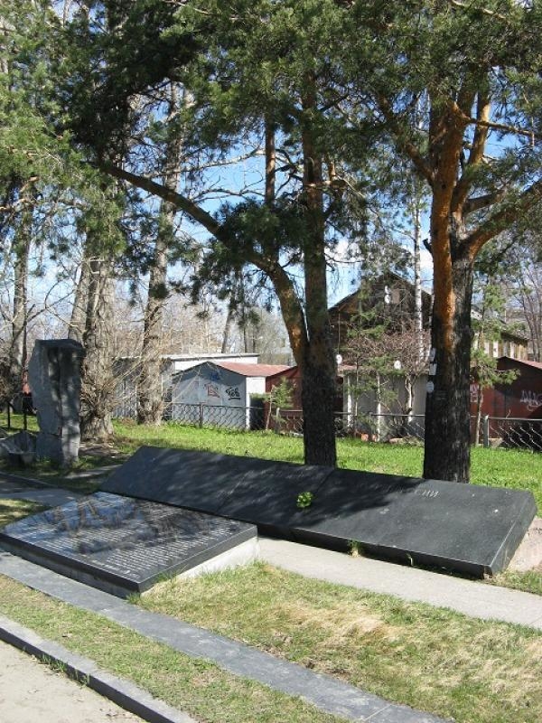 “In February 1992 Memorial in Petrozavodsk created a commemorative site at the common grave with funds provided by the city administration. A slab of black granite stands at the centre of the memorial, bearing the words ‘Here the victims of political repression in 1937-1938 have found rest’. Three other stones carry the names of those shot during the night of 27 November 1937. To the left stands a pillar of grey granite and two blocks of stone transported from the White Sea Canal, with the remnants of metal attachments. Nearby are several personal memorials: granite plaques on the ground and enamel medallions on the trees.”