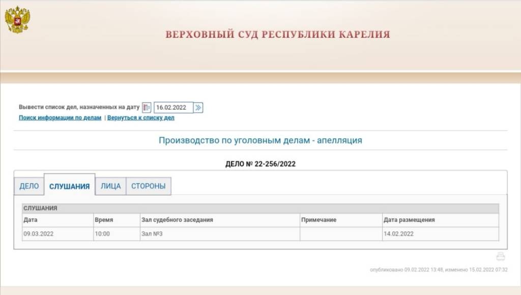 A hearing of the appeal against Yury DMITRIEV’s conviction in late December last year has been scheduled for 9 March 2022 at the High Court of Karelia.